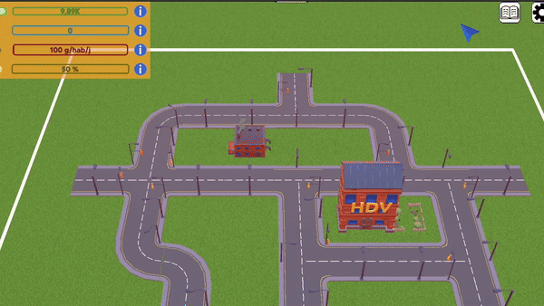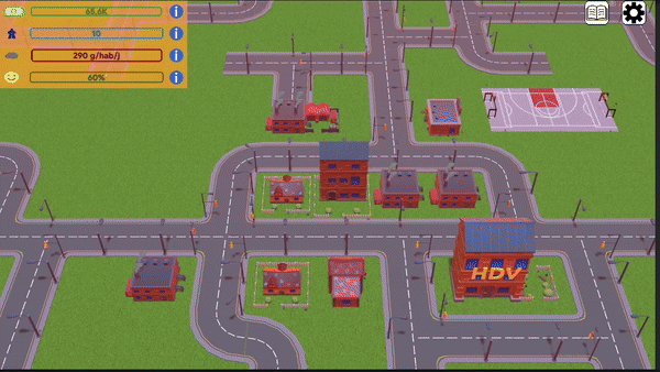 - Nous voulions un jeu écologique. Nous avons donc décidé de mettre en place un système de pollution. Chaque bâtiment pollue plus ou moins en fonction de sa taille et de son type. Par exemple, certains loisirs ne polluent pas car ce sont des parcs publics, alors que d'autres polluent beaucoup car ce sont des bars.