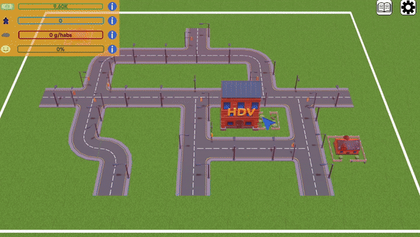 - Nous avons choisi de créer des terrains de 9 par 7 avec les routes déjà tracées. Cela nous a permis de gagner du temps sur le développement car nous savions que les routes étaient une mécanique complexe à mettre en place. Effectivement, si le joueur place les routes lui-même, il faut que les bâtiments soient reliés à une route pour fonctionner. Et il faut que toutes les routes soient reliées les unes aux autres. C'est en sachant cela que nous avons décidé de les placer nous-mêmes et de créer plusieurs terrains avec des routes différentes.
